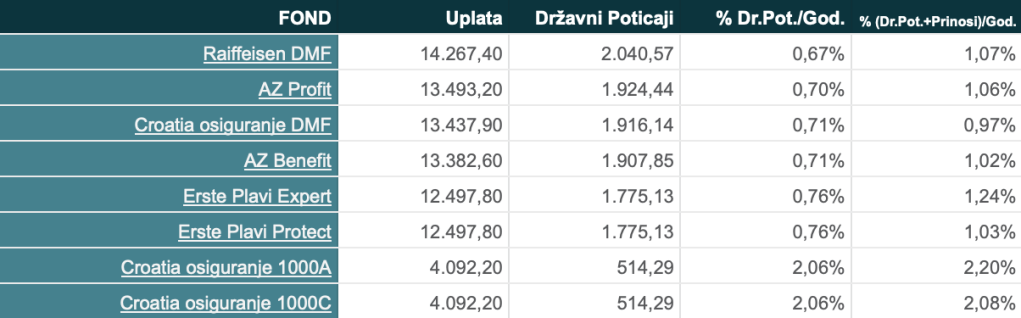 Ostali fondovi su Vam ostvarili ispod 0,47 EUR od države i njenih fondova, znači ispod 32% prinosa fonda čine državni poticaji i prinosi koje je su ostvarili ulaganjem u fond.