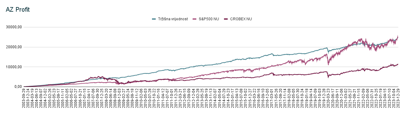 Kada uspoređujemo prosječne godišnje prinose od osnutka fonda do 31. prosinca 2023. možemo primijetiti da fondovi trećeg mirovinskog stupa imaju bolje prinose od domaćeg tržišnog index-a u svim razdobljima osim onog najmlađih fondova (CO 1000A i CO 1000C). Dok SP500 po prinosima pobjeđuje treći mirovinski stup u svim pogledima kroz povijesna razdoblja.