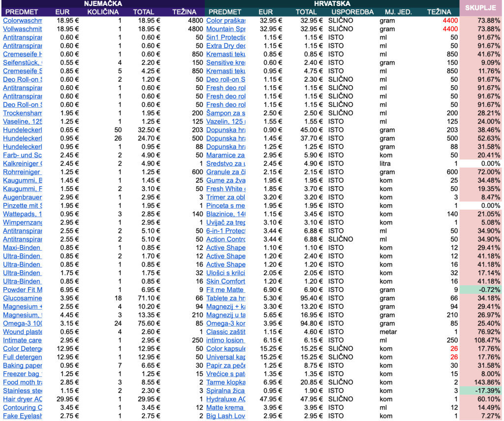 Osobno nisam osjetila značajan rast cijena iz jednostavnog razloga — ne kupujem u Hrvatskoj. Umjesto toga, većinu kupovine obavljam u Njemačkoj, gdje osim povoljnijih cijena, postoji i izdašniji sustav cashbacka koji daleko nadmašuje hrvatske loyalty programe.