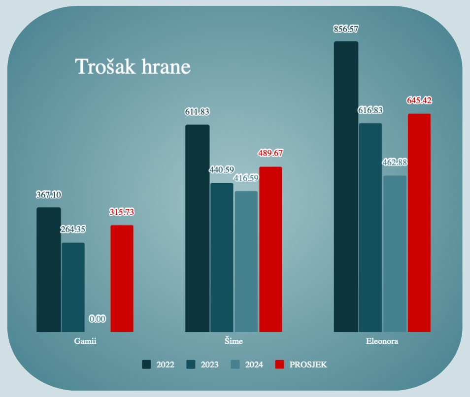 1️Minimalni trošak – osnovni izdaci koji su vezani isključivo za tog psa (hrana + individualni veterinarski troškovi).